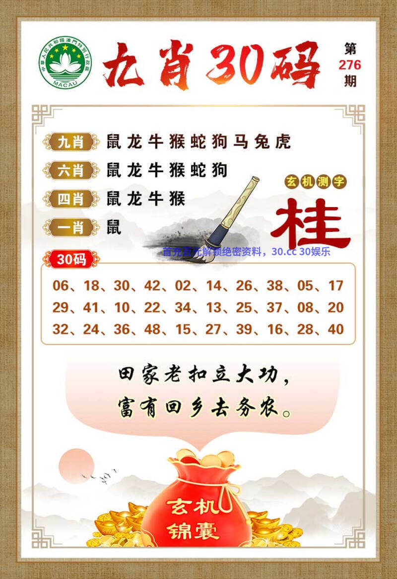 276期:【绝杀二肖】〖狗马〗开:鸡09准 |