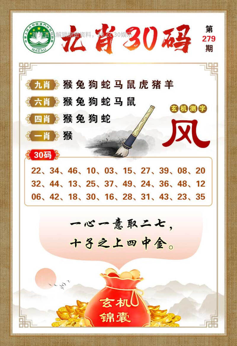 279期:九肖 | 狗羊牛鼠龙马兔猴猪 | 开:兔27 |